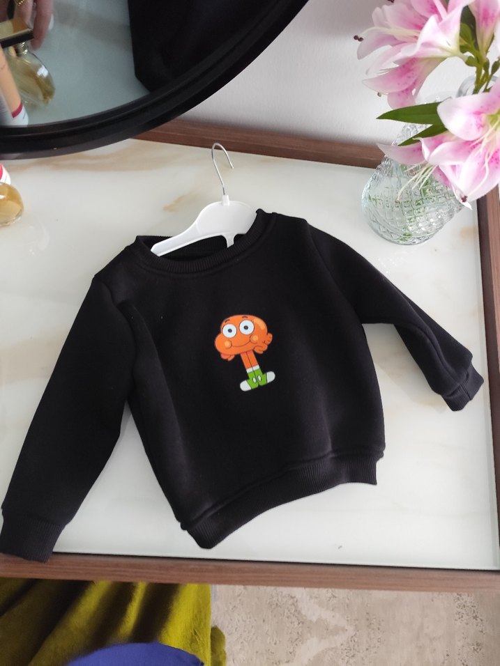 Renkli Baskılı Siyah Erkek Çocuk Sweatshirt