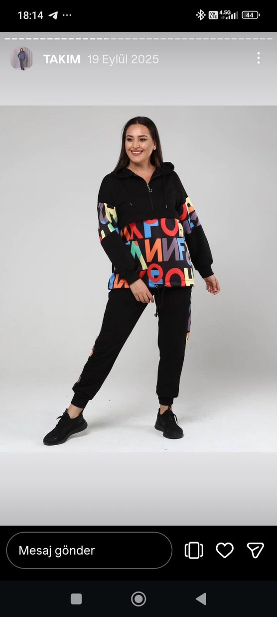 Siyah kumaş üzerinde renkli tie-dye desenli, kapüşonlu ve fermuarlı, bol kesim kadın eşofman takımı. Uzun kollu, rahat ve gündelik kullanıma uygun. sıfır mağaza ürünü beden seçenekleri mevcut cafcaf marka