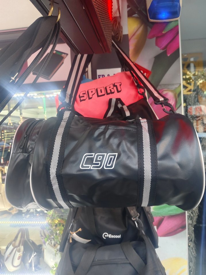 Renkli baskılı siyah spor çantası, fermuarlı bölmeleri ve ayarlanabilir askıları ile trend şıklık sunar. ️♂️