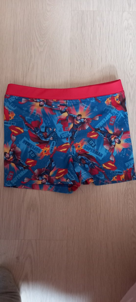 Kırmızı bel bantlı, Superman baskılı renkli erkek çocuk mayo. Suya dayanıklı ve hızlı kuruyan kumaştan üretilmiştir.