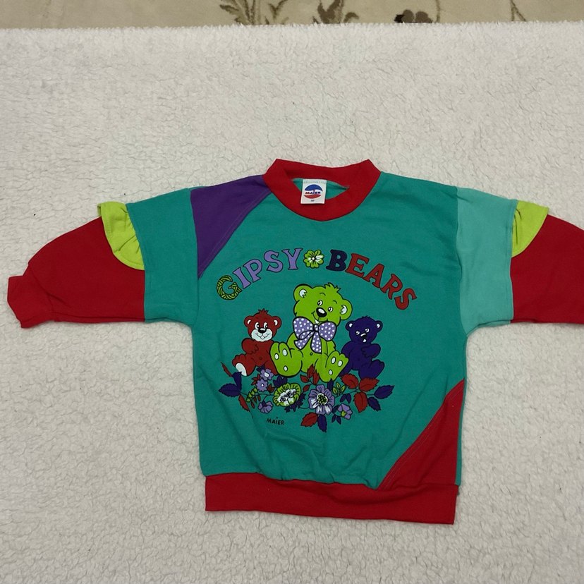 Çocuklar için çok renkli baskılı, rahat kesim ve bisiklet yaka sweatshirt. Yumuşak ve örme dokulu kumaştan, uzun kollu ve pop kültür tarzında.