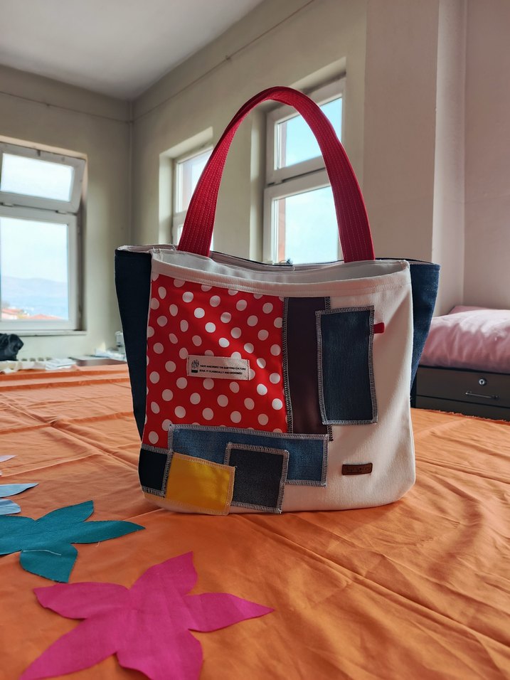 Renkli Baskılı Tasarım Kumaş Çanta özel dikim