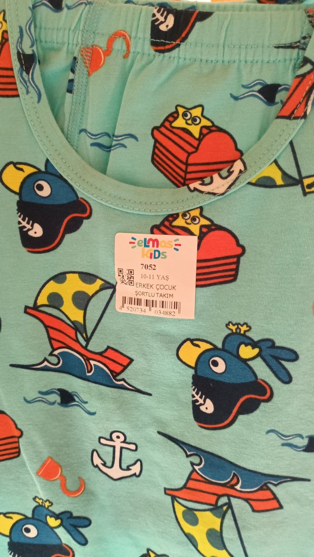 10-11 yaş çocuklar için renkli baskılı turkuaz atlet, deniz temalı eğlenceli desenlerle süslenmiş.