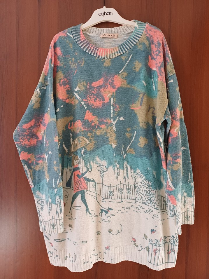 Renkli Baskılı Uzun Kollu Salaş Kazak