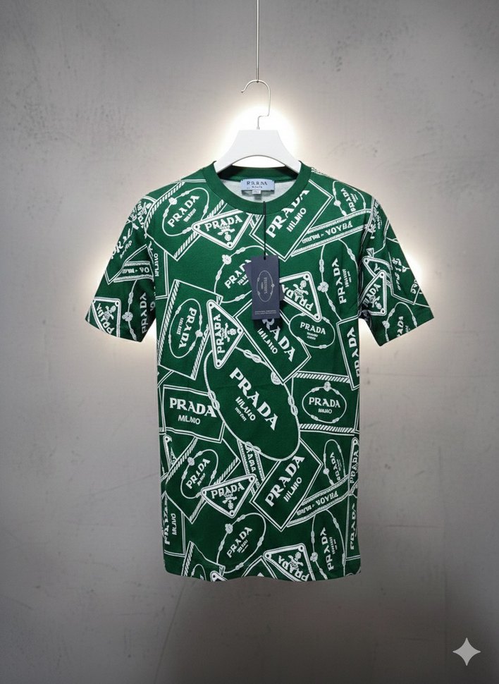 Renkli baskılı, yeşil renkli erkek tişörtü, bol kesim ve yuvarlak yaka ile tasarlanmıştır. Sentetik kumaştan yapılmış, günlük rahat stil için uygundur. Baskıda 'RADA' yazısı yer alır.