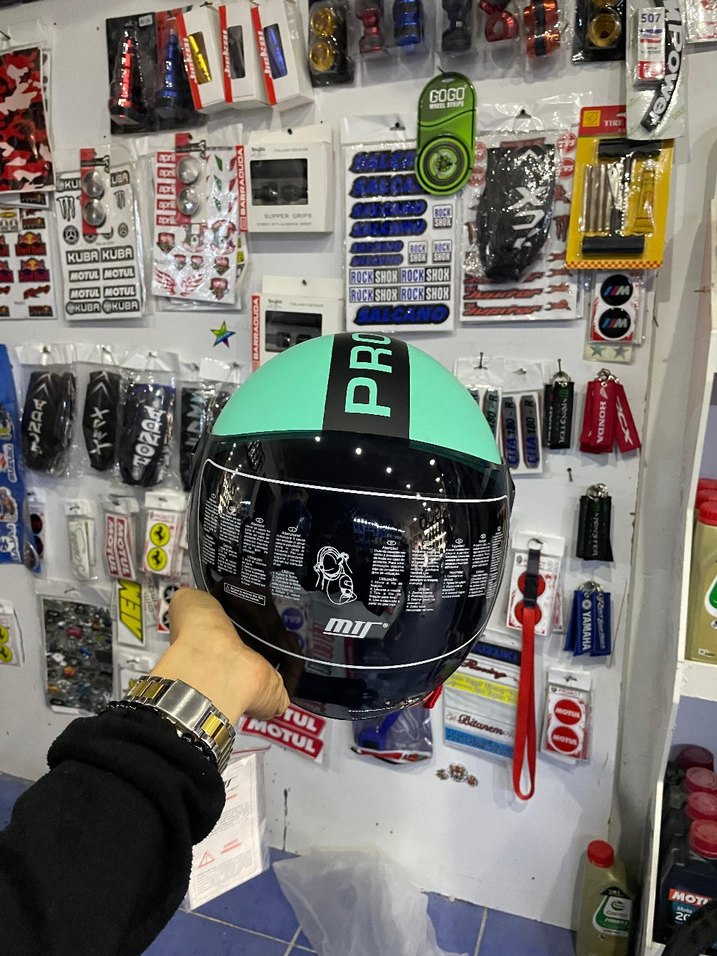 Renkli baskılı yeşil motosiklet kaskı, plastik malzemeden üretilmiş ve cırt cırtlı kayışa sahiptir. Sokak tarzı ve rock punk havasına uygundur. ️