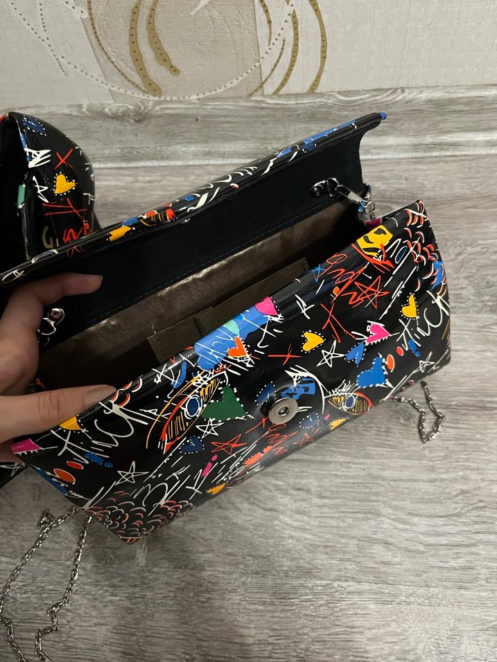 Renkli Baskılı Zincir Detaylı Kadın Çanta