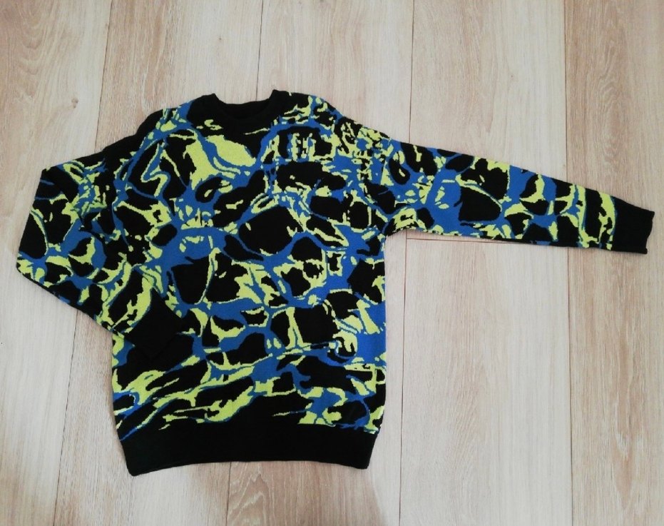 Renkli batik desenli, uzun kollu, bisiklet yaka erkek sweatshirt. Gevşek kesim ve örme dokusuyla sokak modasına uygun, yumuşak ve sıcak kumaştan yapılmıştır.