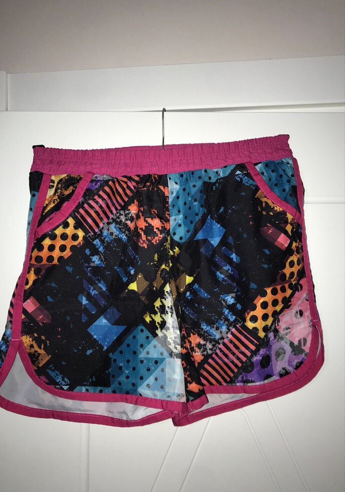 renkli batik ve geometrik desenlere sahip cepli bol kesim kadın mini şort deniz ve havuz kullanımı için uygun