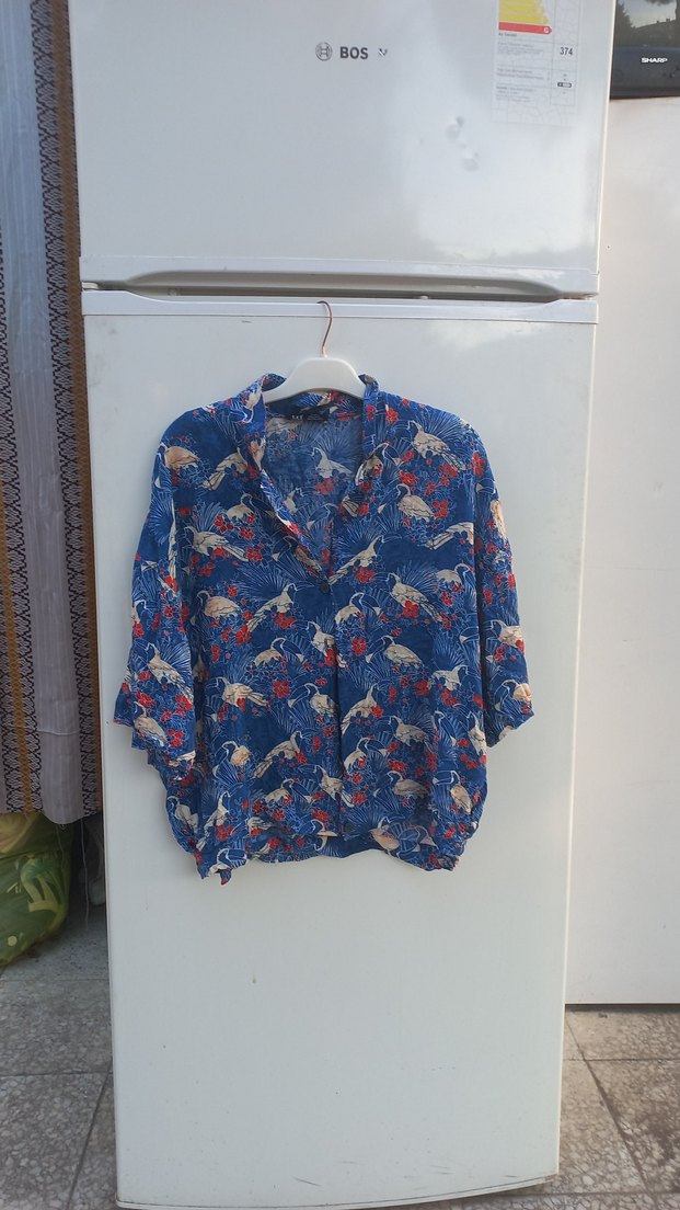 Kadın gömlek, kısa kollu ve yakalıdır. Renkli batik deseni ve düğmeli ön kısmı ile rahat ve salaş bir görünüme sahiptir. #zaragömlek #lzaragömlek