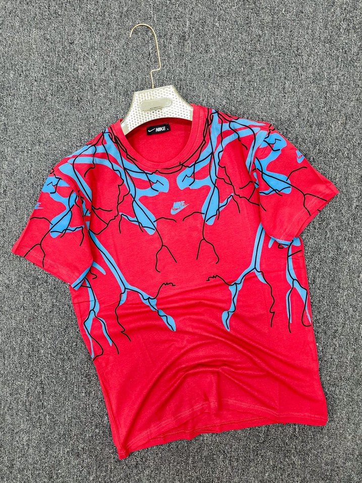 Renkli batik desenli, kısa kollu, yuvarlak yakalı ve bol kesim erkek tişörtü, yumuşak sentetik kumaştan üretilmiştir.