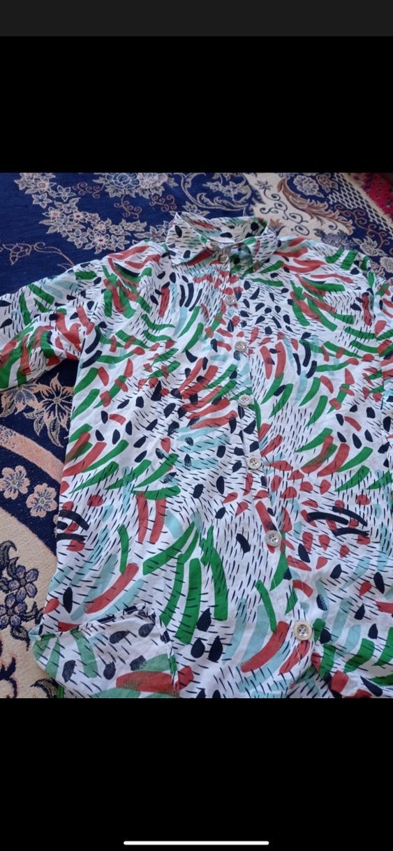 Renkli batik desenli, uzun kollu, yakalı ve düğmeli gömlek. Bohem tarzı için uygun, rahat kesim.