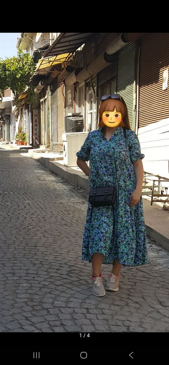 Renkli pastel tonlarda batik desenli, salaş kesim midi elbise. Kısa kollu, yakalı ve kabarık kol detayıyla günlük kullanım için uygun.