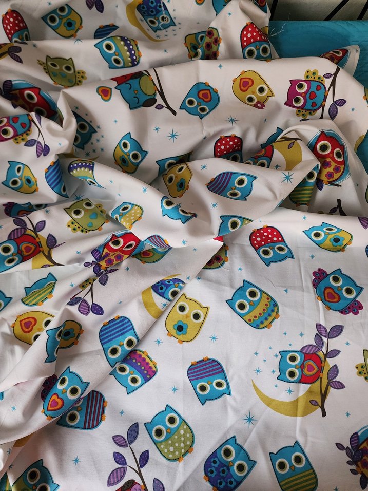 Renkli baykuş desenli, duck kumaş parça..‼️‼️ En 135 cm, boy 180 cm. ‼️‼️Marka temsili.. Masa örtüsü, runner, amerikan,... Her şekilde değerlendirilir..