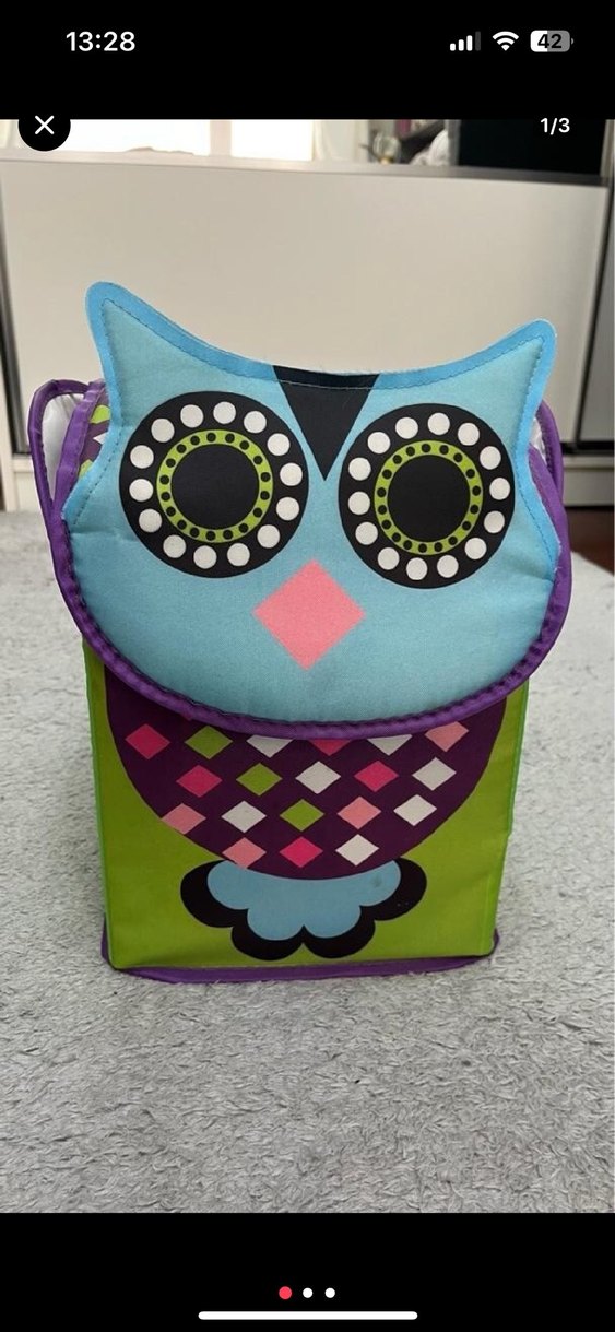 Renkli ve canlı desenlere sahip baykuş figürlü saklama kutusu