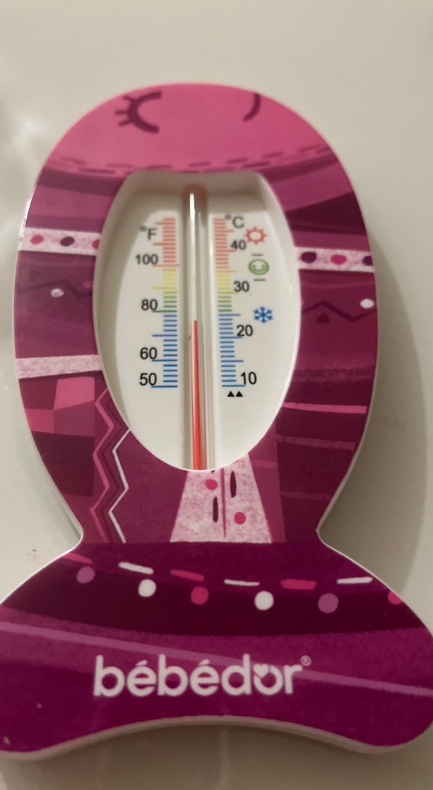 Renkli Bebedor termometre, °C ve °F ölçü birimlerinde sıcaklık gösterir, okunması kolay skalası ve hava durumu simgeleri bulunur. ️