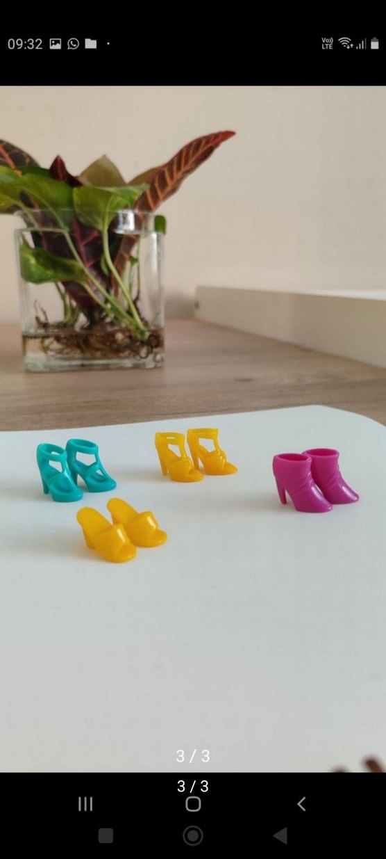 Mavi, sarı ve pembe renklerde çeşitli topuklu ve bot tarzı bebek ayakkabıları seti. Çantalı değildir.