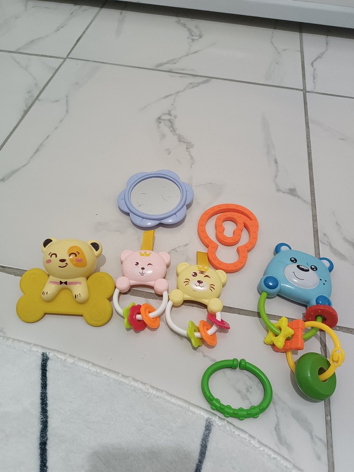 Renkli Bebek Diş Kaşıyıcı ve Çıngırak Seti