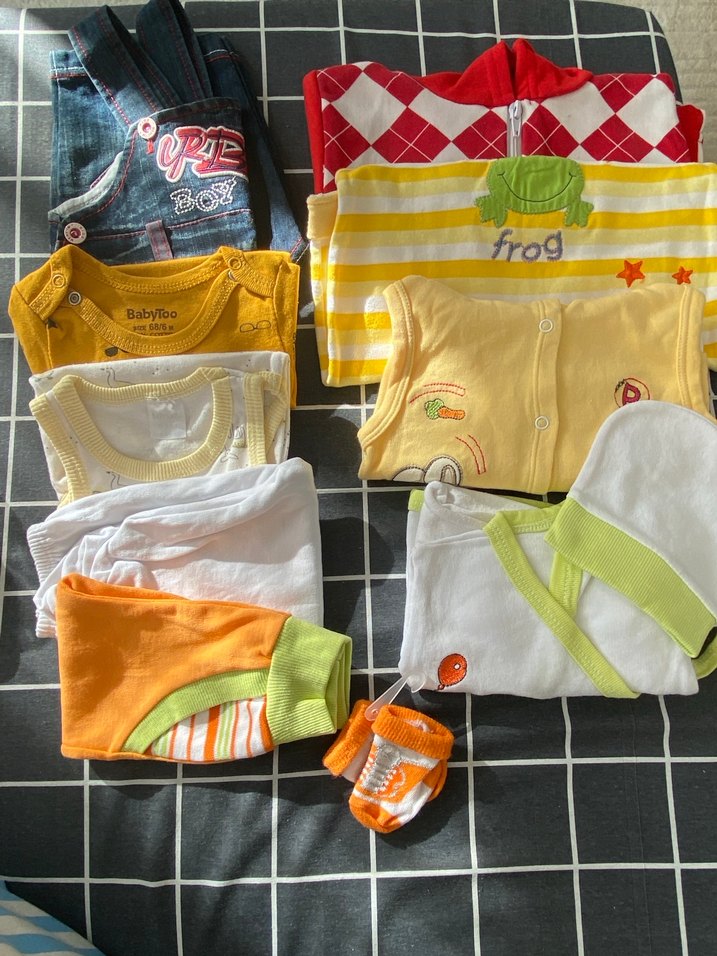 Renkli, yumuşak tekstil kumaştan bebek erkek kıyafet seti. Kolsuz, çıtçıtlı ve askısız tasarımlar içerir. Desensiz ve rahat parçalar.