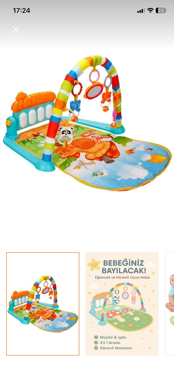 Renkli ve yumuşak yüzeyli, plastik kemerli oyuncaklarla bebekler için eğlenceli oyun halısı. Canlı desenler ve etkileşimli parçalar içerir.