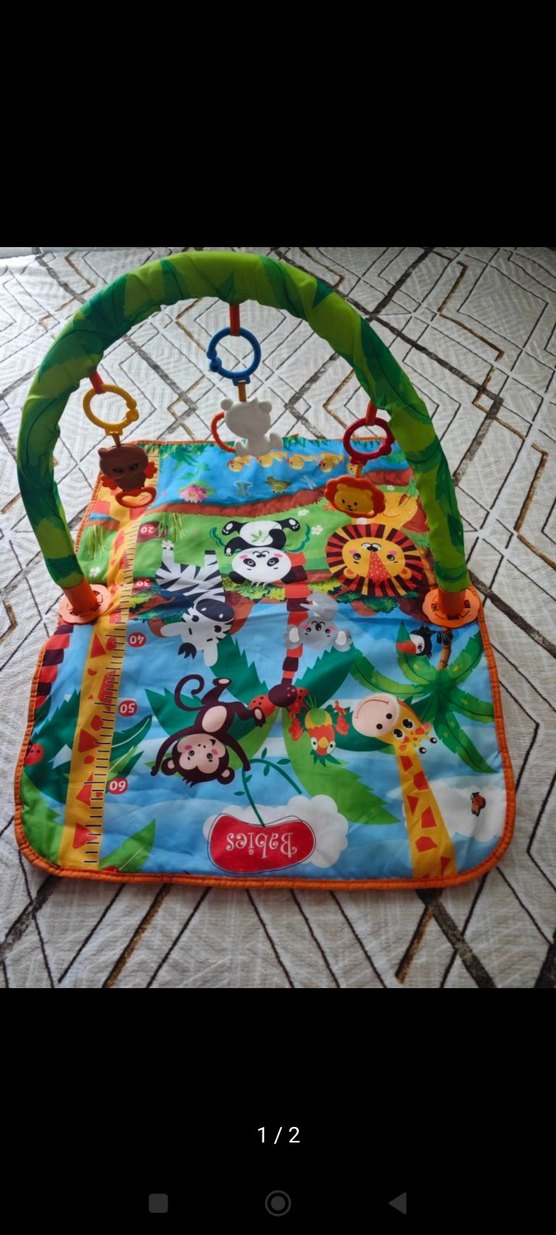 renkli bebek oyun halısı resimde görüldüğü gibi oyuncakları tam renk canlıdır sadece oyuncak asılan yerde hafif ezilme var onun dışında bir kusuru yoktur