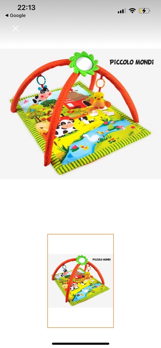 PICCOLOMONDI markalı renkli bebek oyun halısı, yumuşak ve sıcak kumaş ile asılan oyuncaklar içerir. Canlı hayvan desenleriyle rahat bir oyun alanı sağlar.