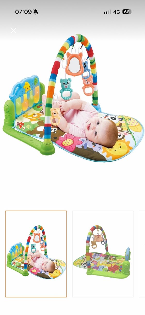 Renkli oyuncaklar ve yumuşak plastik piyano tuşları içeren bebek oyun halısı, etkileşimli oyun ve duyusal gelişim sağlar. Farklı melodiler ve ses düzeyleri mevcut