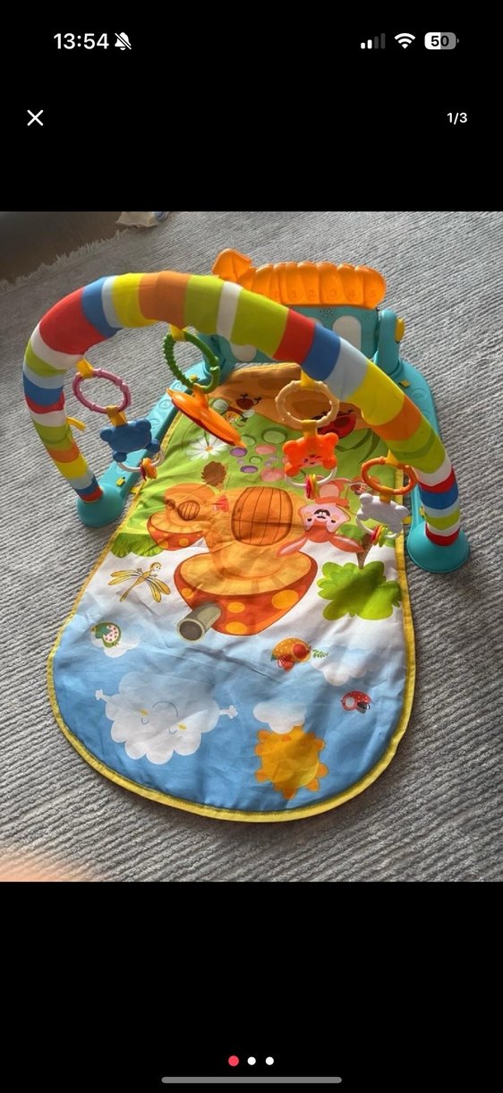 Sentetik kumaştan yapılmış, renkli bebek oyun halısı ve oyuncaklı aktivite kemeri ile bebeklerin ilgisini çeker.