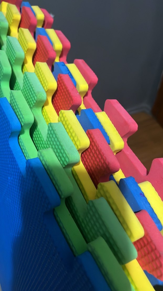 Çocuklar için birbirine geçmeli renkli plastik bebek oyun matı. Yumuşak ve güvenli oyun alanı sağlar.