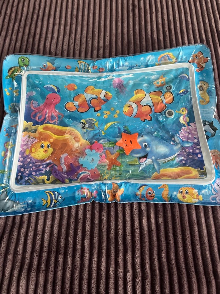 Sentetik kumaştan yapılmış, sualtı deniz canlıları desenli renkli bebek oyun matı, çocuklar için yumuşak ve eğlenceli bir yüzey sunar. Su oyun mati