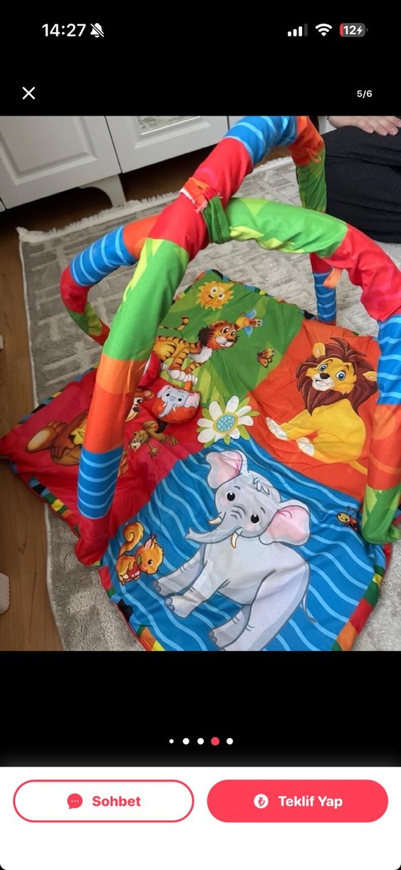 Yumuşak sentetik kumaştan yapılmış, hayvan desenli renkli bebek oyun halısı