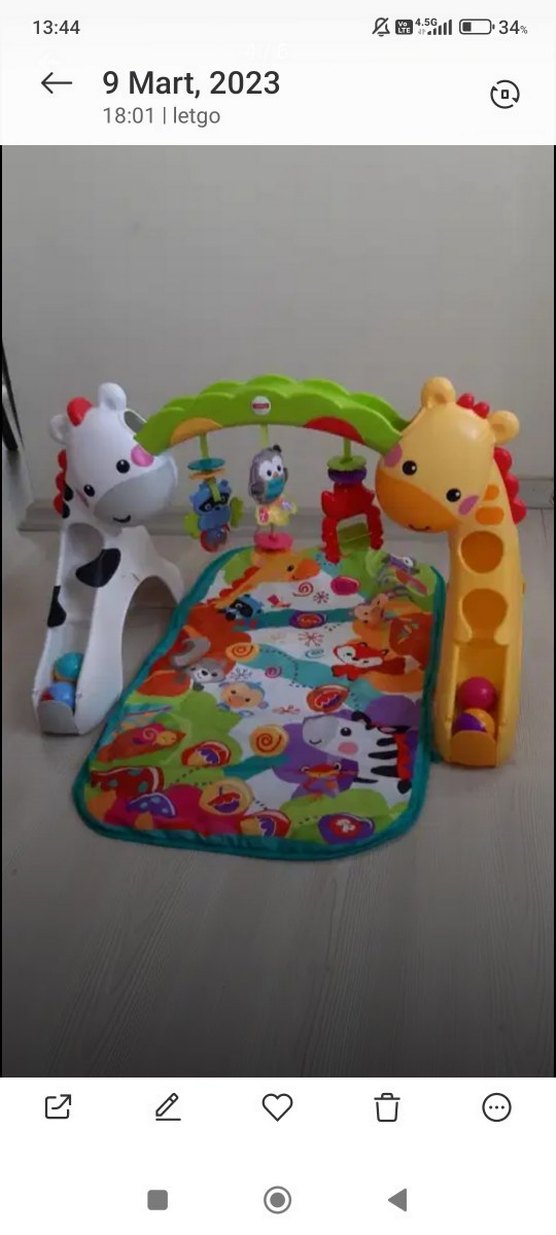 Renkli desenlere sahip bebek oyun matı, hayvan figürlü plastik kemerler ve asılı oyuncaklarla bebeklerin ilgisini çeker. Küçük toplar da içerir. ışıklı müzikli..