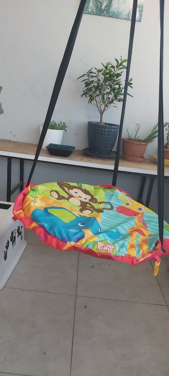 Renkli hayvan desenleriyle sentetik kumaştan yapılmış, çocuklar için yumuşak ve eğlenceli bir oyun minderi. Asma veya taşıma için sağlam kayışlara sahiptir.