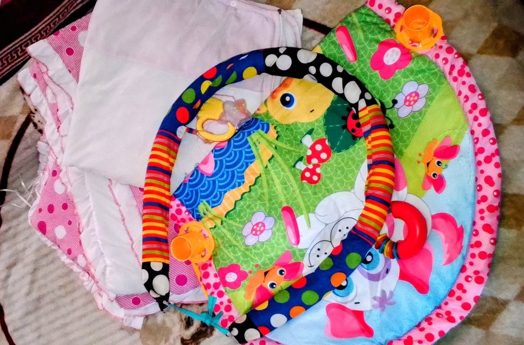 renkli bebek oyun minderi. Canlı desenler ve interaktif oyun için bağlı oyuncaklar içerir.yorgan yatak yan Koruma takımı.fermuarlı battaniye. ihtiyaç fazlası