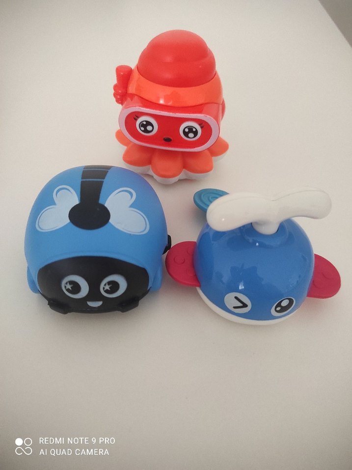 Sevimli gözlü ahtapot, balina ve uğur böceği figürlü renkli deniz canlıları oyuncak seti. Canlı renkleriyle eğlenceli oyun için ideal. birisi çek bırak,biri normal gidiyor. balına dişlik