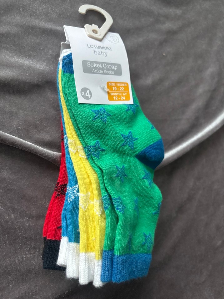 Yumuşak kumaşlı, yıldız desenli renkli bebek soket çoraplarından oluşan 4'lü set. Günlük kullanım için uygundur.