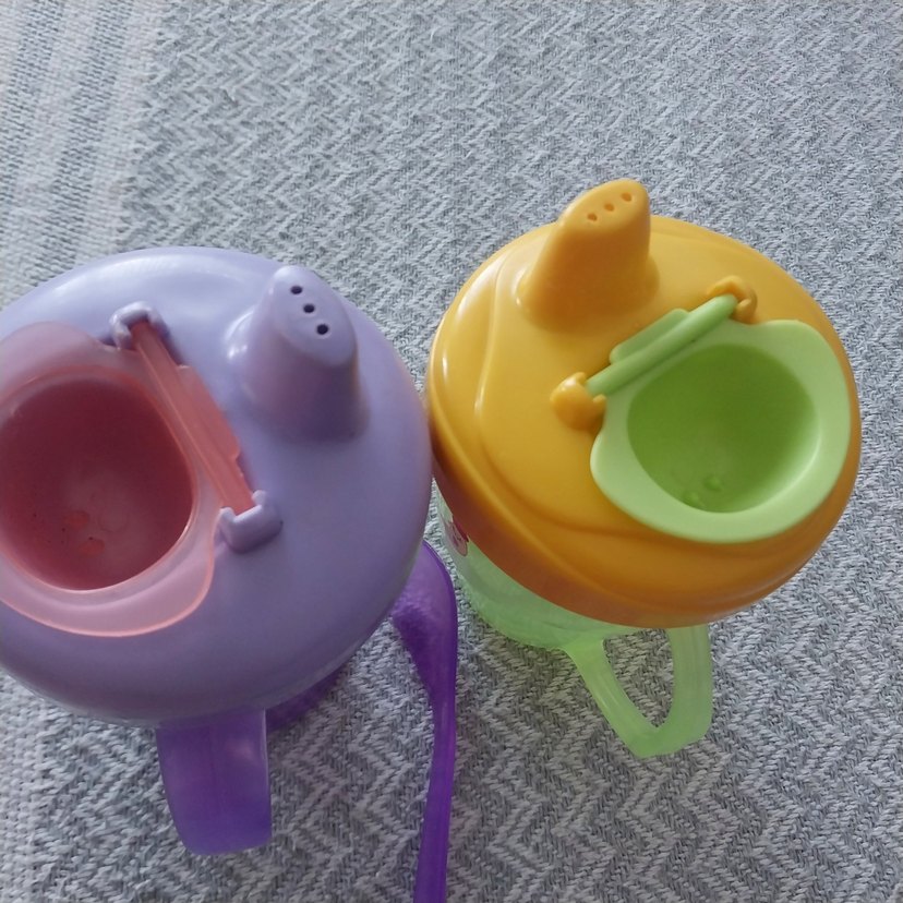 Taşınabilir saplı ve dökülmez kapaklı, çok renkli bebek sulukları seti. Kolay içim sağlar.