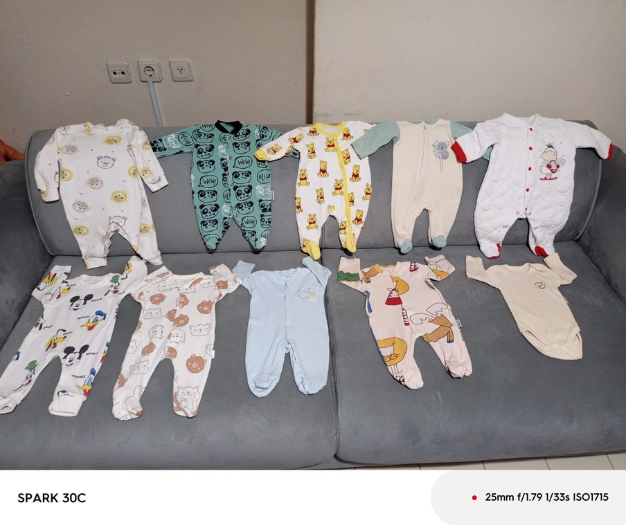 Çeşitli sevimli desenlere sahip, yumuşak tekstilden yapılmış renkli bebek tulumları seti. Her parça bebekler için rahat ve kullanışlıdır. 5 adet 03 ay 5 adeti 3 6 ay 10 parça toplam SON FİYAT ve elimden geldiğince uyguna veriyorum