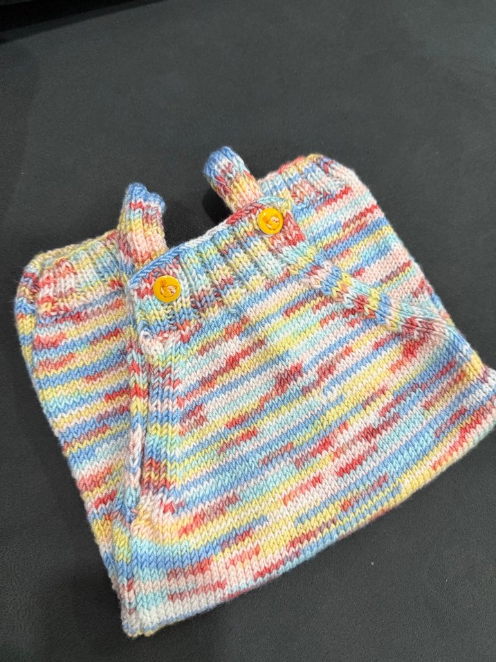 Yumuşak örme dokusu ve düğme detayları ile renkli bebek tulumu canlı çok renkli iplikten yapılmıştır. El emeğidir kendim ördüm hiç giyilmedi örüp satıyorum