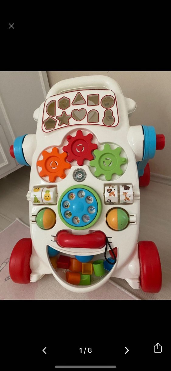 Renkli bebek yürüteci, dönen dişliler, şekil eşleştirme, döner tuş ve dönen bloklarla çocukları eğlendirir. Kırmızı tekerlekleriyle sağlam tasarım.