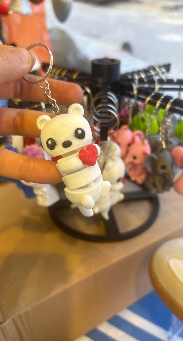 Renkli beyaz ayıcık şeklinde, kırmızı kalp tutan tokalı anahtarlık, sokak modası ve rahat rock punk tarzına uygun.
