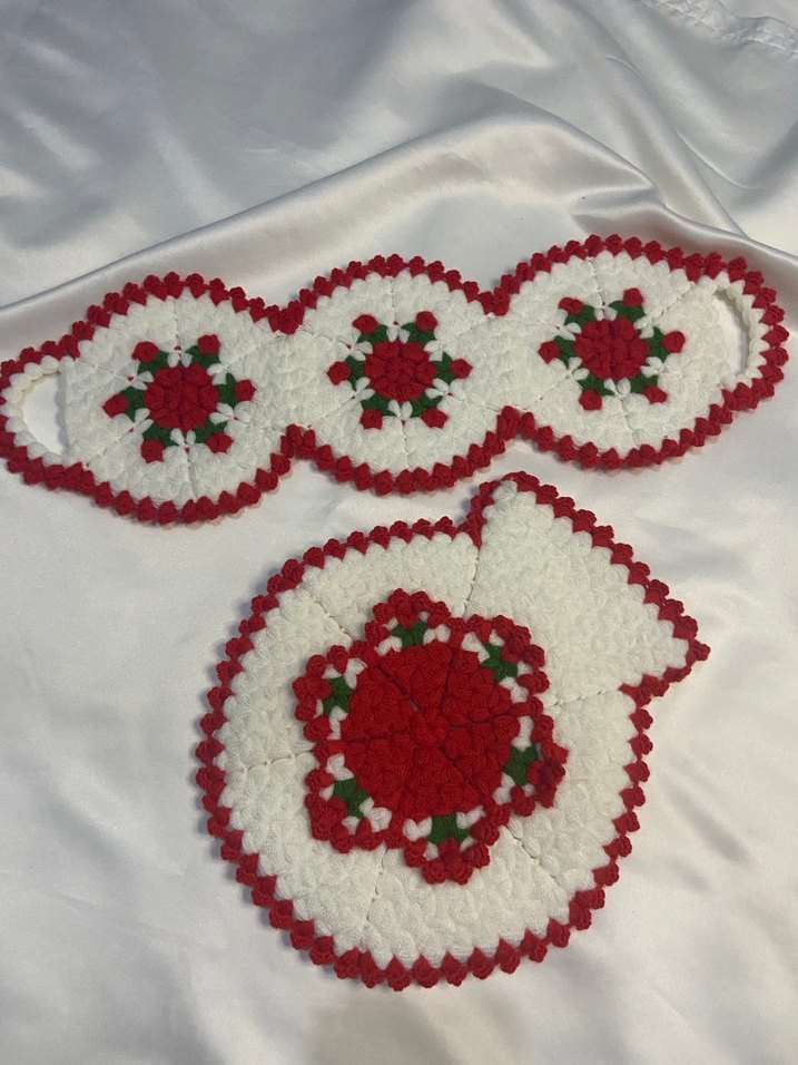 Beyaz tabanlı, kırmızı ve yeşil renk detaylarına sahip renkli banyo süngeri seti, etkili temizlik ve nazik peeling sağlar.