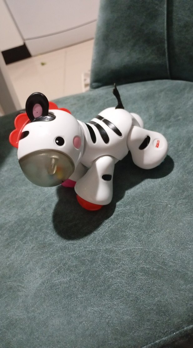Renkli beyaz zebra şeklinde, çıngrak elleri kolları hareket ediyor ses çıkarıyor