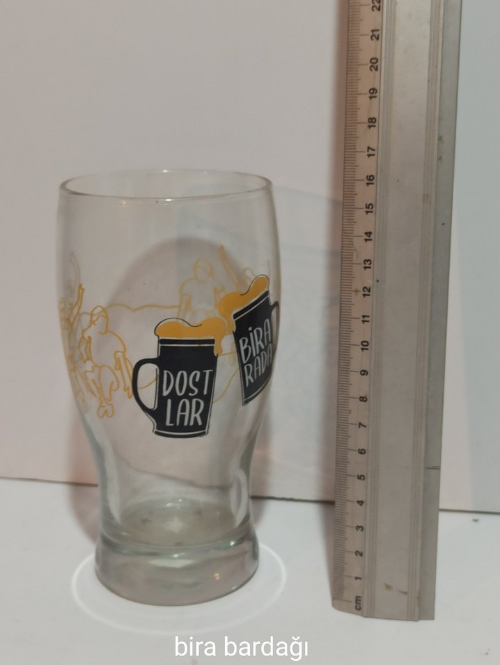 renkli bira bardağı, üzerinde eğlenceli çizimler ve yazılar bulunur. Dayanıklı yapısı ve iyi hacmi vardır.