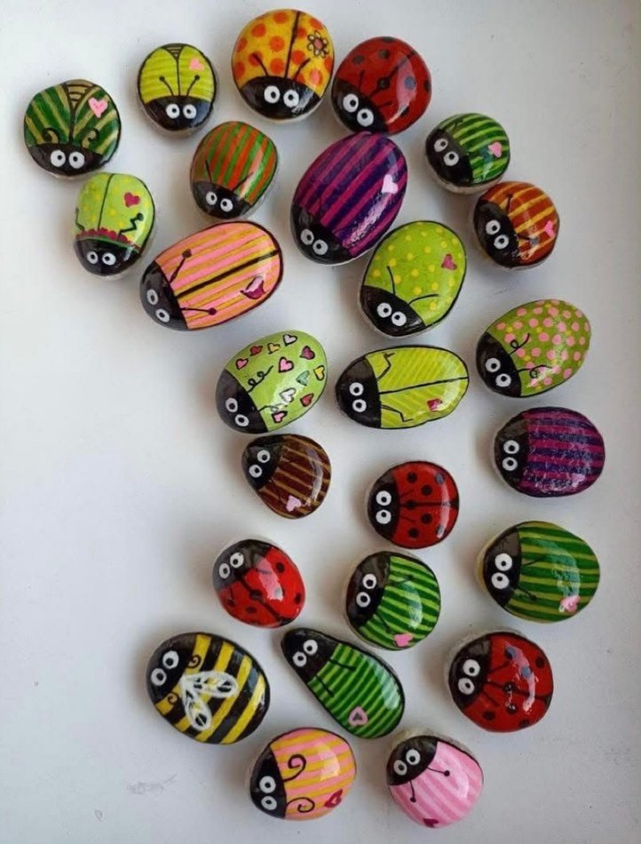 Canlı desenlere ve gözlere sahip çeşitli sevimli böcek şekilli renkli taş süsleri. Yaratıcı taş tasarımları için uygundur.