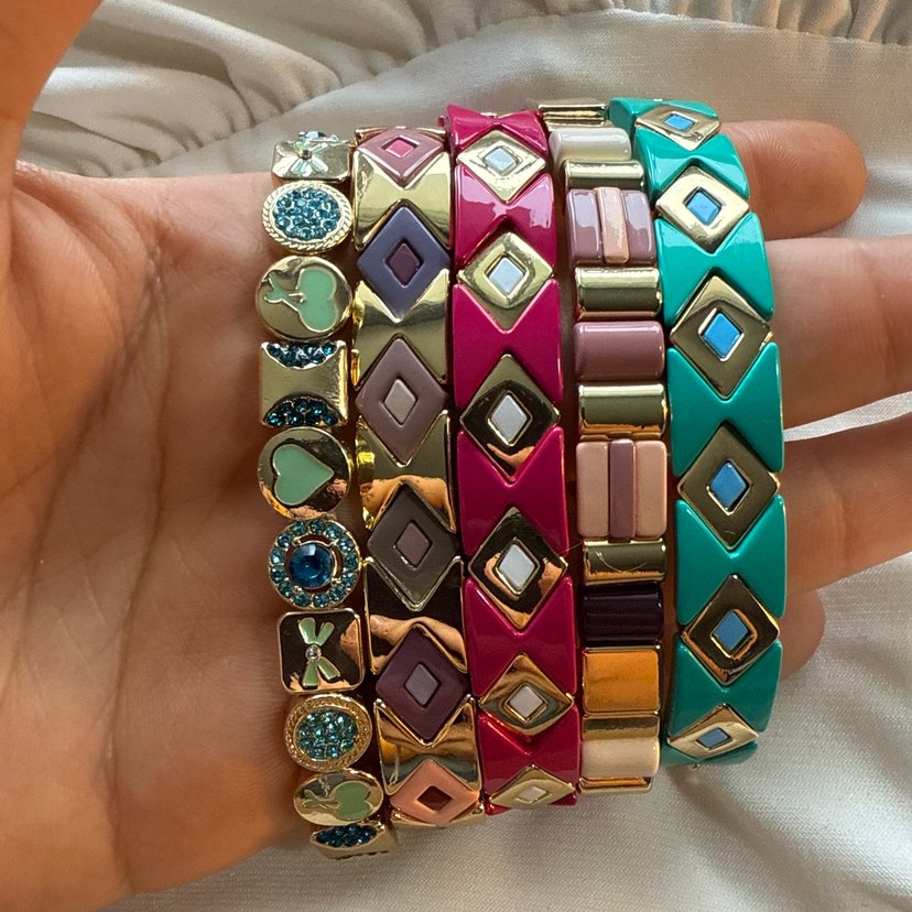 Renkli ve desenli boncuklu bohem tarzı kadın bileklikleri, günlük kullanım için uygundur. Adet fiyatıdır.