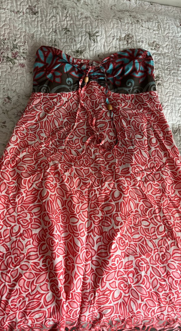 Renkli, boyundan bağlamalı ve bol kesim , bohem tarzıyla uyumlu uzun boyda. Yazlık kullanıma uygun