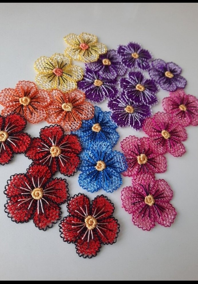 Çeşitli renklerde bohem tarzı nakışlı renkli çiçekler, el işleri ve dekorasyon için uygundur.