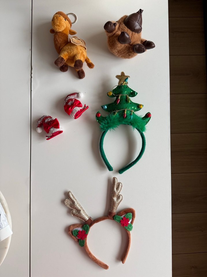 Renkli, kürklü ve nakış detaylı bohem tarzda çocuk saç bantları ve tokaları. Noel temalı ağaç ve geyik desenleri içerir. Küçük 2 tane toka 300 Geyik Taç 400 Yılbaşı Taş 500 Maymun anahtarlık 750 Deve anahtarlık 1000