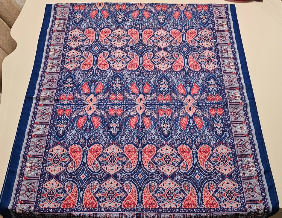 Renkli ve canlı desenlere sahip bu kadın şalı, bohem tarzıyla dantel detayları içerir. Retro ve hippie havası katar.